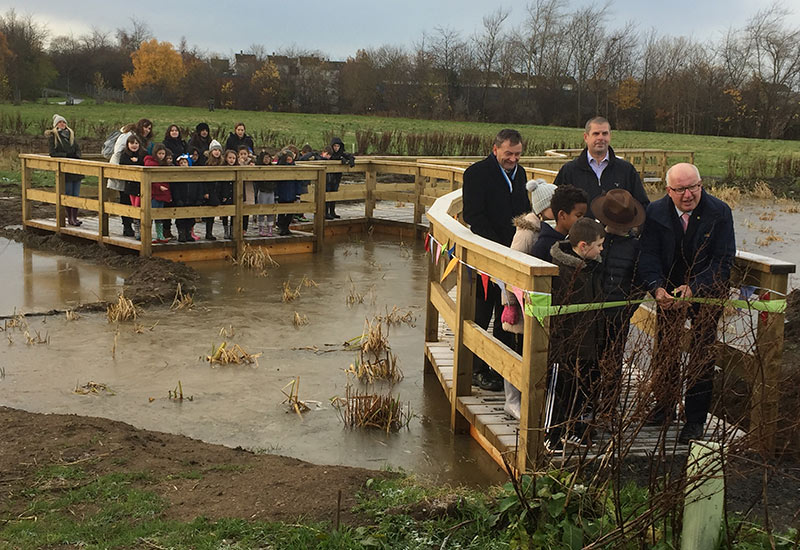 The following year a boardwalk and viewing platform were built so that park users could immerse themselves in this bio-diverse habitat. Thanks to funding from the Postcode Local Trust which is a grant-giving charity funded entirely by players of People’s Postcode Lottery we were able to improve the access to the wetland area. Our project received £20,000 from the Trust to build a boardwalk and to facilitate community activities to encourage people to learn about the local nature.