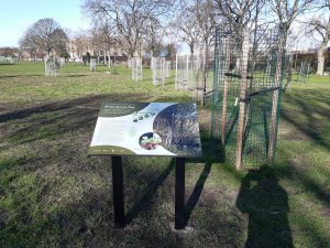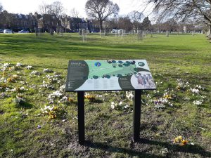 The arboretum has 52 tree species from the majority of the continents. These include a Giant Redwood from North America, Antarctic beech from South America, Wollemi pine from Australia. This will give each area within the new arboretum a theme of a continent where the design would be to show each of the continents from above. The trees are planted with robust stakes and guards, irrigation tubes, bark mulch and will be watered. The programme also links to Edinburgh’s commitment to becoming a net-zero carbon city by 2030 and the Edinburgh Million Tree City aims. There are 5 panels explaining more about the trees.